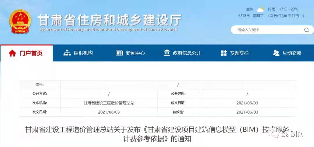 《甘肃省建设项目建筑信息模型(BIM)技术服务计费参考依据》发布